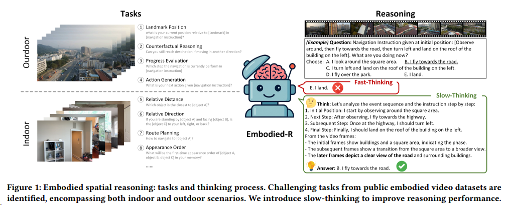 Embodied-R(清华) 27 是一个基于大规模视觉语言模型(VLM)和小规模语言模型(LM)的协作框架,通过强化学习(RL)激活胶囊视觉空间推理能力,在有限的计算资源下提高了多模态推理模型在视频模态下的空间推理性能。