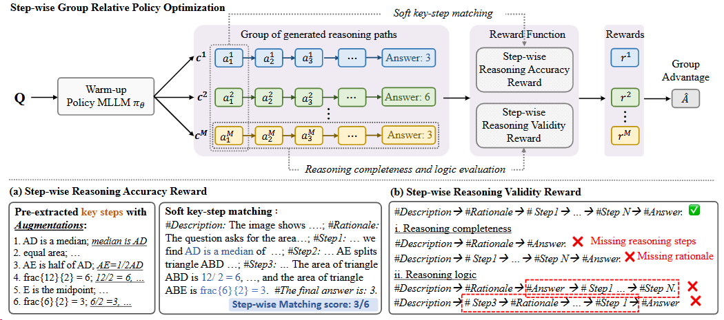 | Step-GRPO | 2025 | Same as GRPO's | Yes | Yes | Rule-based reasoning rewards | Step-wise reward | Paper | Code Model |